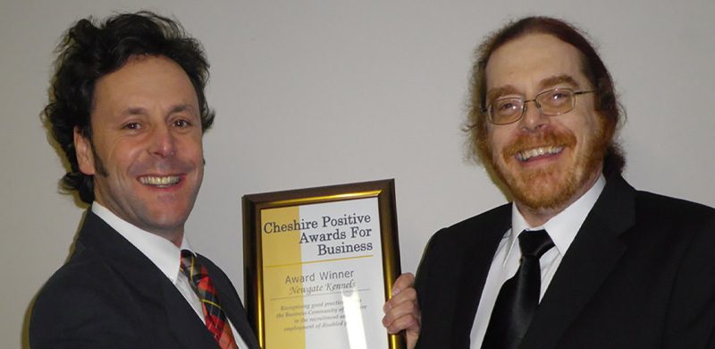 Newgate kennels and Cattery were presented with the award for supported employment at a lavish ceremony at Hoole Hall in Chester. Pictured with the award are Joel and Michael. Michael came to work at Newgate in April 2008 sponsored by the government scheme to help people with disabilities return to full time employment. Michael had been suffering from severe sociaphobia, which prevented him leaving his own home for months on end. Michael started by working for a few hours a week which slowly increased to part time and then full time employment. Michael has progressed and is now a vital part of the workforce here at Newgate and in 2010 aims to complete his NVQ in Animal Care.