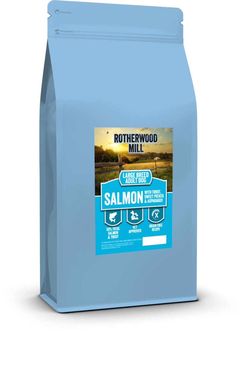 Salmon and Trout 50% (including Freshly Prepared Salmon & Freshly Prepared Trout 33%, Dried Salmon 15%, Salmon Stock 2%) Sweet Potato (24%), Peas (9%), Potato, Beet Pulp, Linseed, Omega 3 Supplement, Minerals, Vitamins, Vegetable Stock, Asparagus (0.3%), Glucosamine (170 mg/kg), Methylsulfonylmethane (170 mg/kg), Chondroitin Sulphate (125 mg/kg), FOS (96 mg/kg), MOS (24 mg/kg)