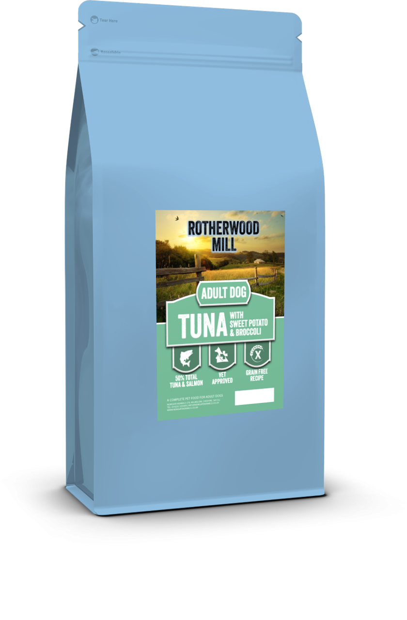 Tuna & Salmon 50% (including Freshly Prepared Tuna 26%, Dried Salmon 19%, Salmon Oil 3% & Salmon Stock 2%), Sweet Potato (24%), Potato, Peas (9%), Linseed, Beet Pulp, Minerals, Vitamins, Omega 3 Supplement, Vegetable Stock, Broccoli (0.3%), FOS (96 mg/kg), MOS (24 mg/kg)